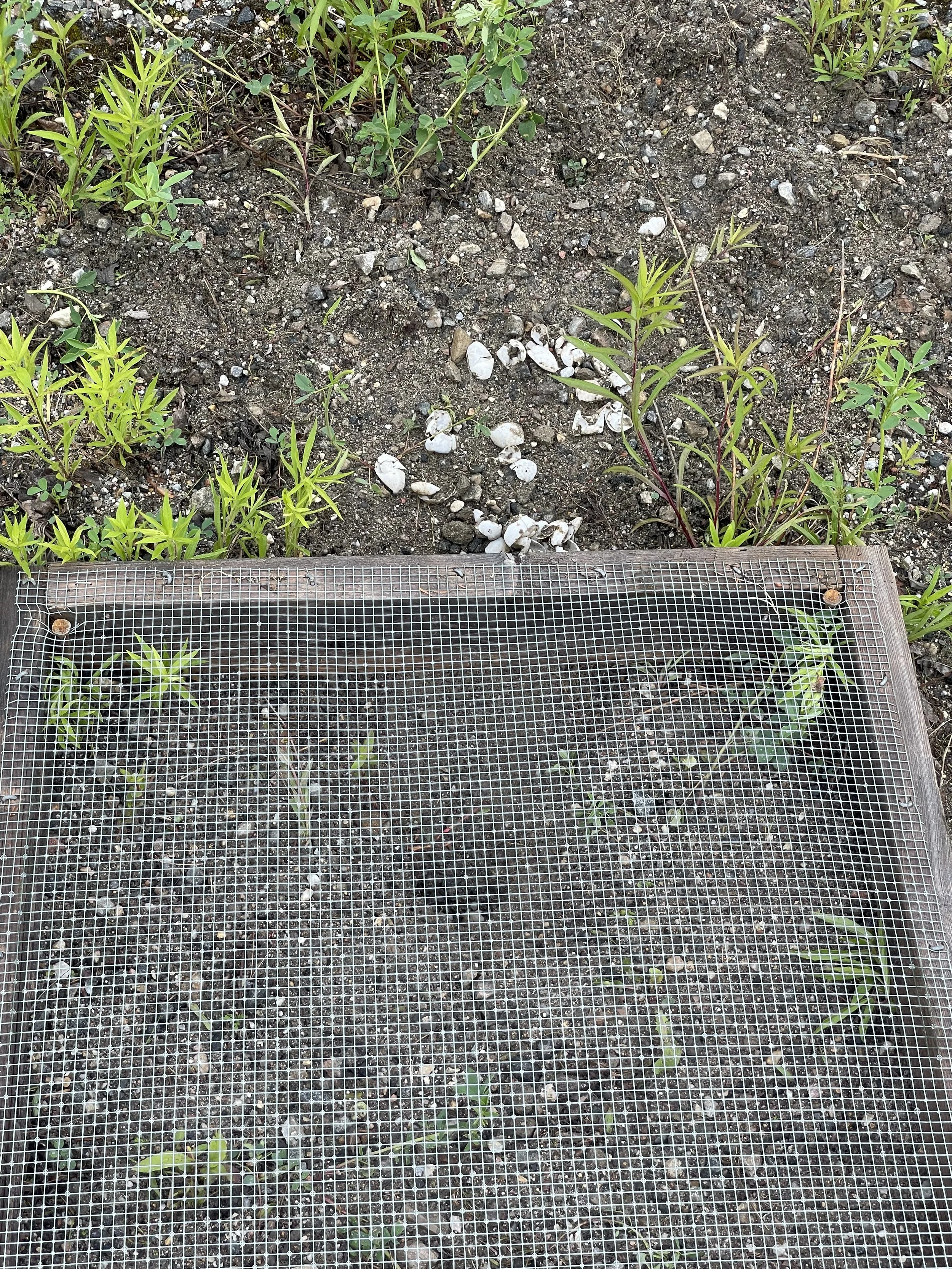 Today though, the Authority’s protection could not prevent the raccoons from grinning and winning. Notice the digging under the wire mesh and white eggshells strewn around the site.